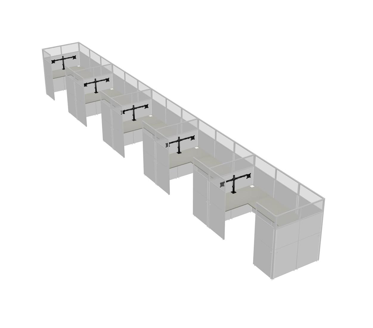 Grey Shadows U-shaped Panel System For 5 Person + Monitor Arm (double Arms) For 5 User(s)