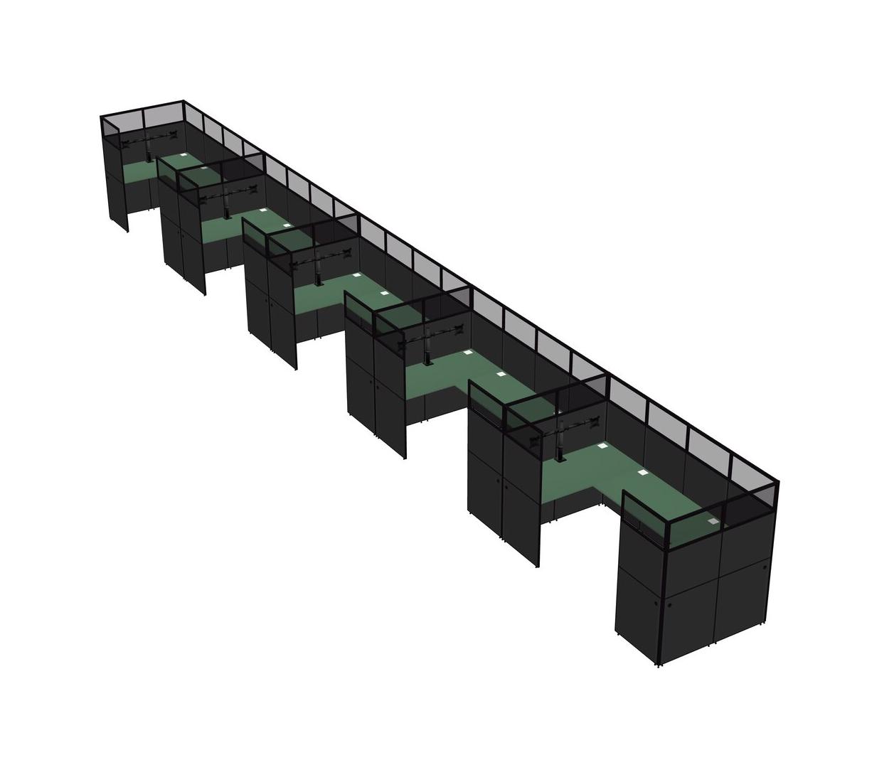 Green U-shaped Panel System For 5 Person + Monitor Arm (double Arms) For 5 User(s)