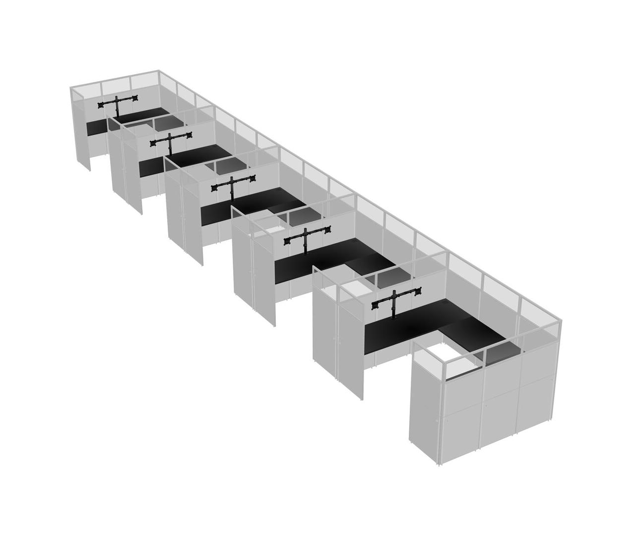 Black U-shaped Panel System For 5 Person + Monitor Arm (double Arms) For 5 User(s)