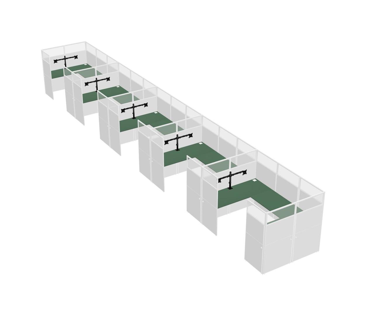 Green U-shaped Panel System For 5 Person + Monitor Arm (double Arms) For 5 User(s)