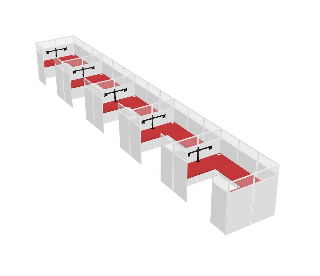 Prism Red U-shaped Panel System For 5 Person + Monitor Arm (double Arms) For 5 User(s)