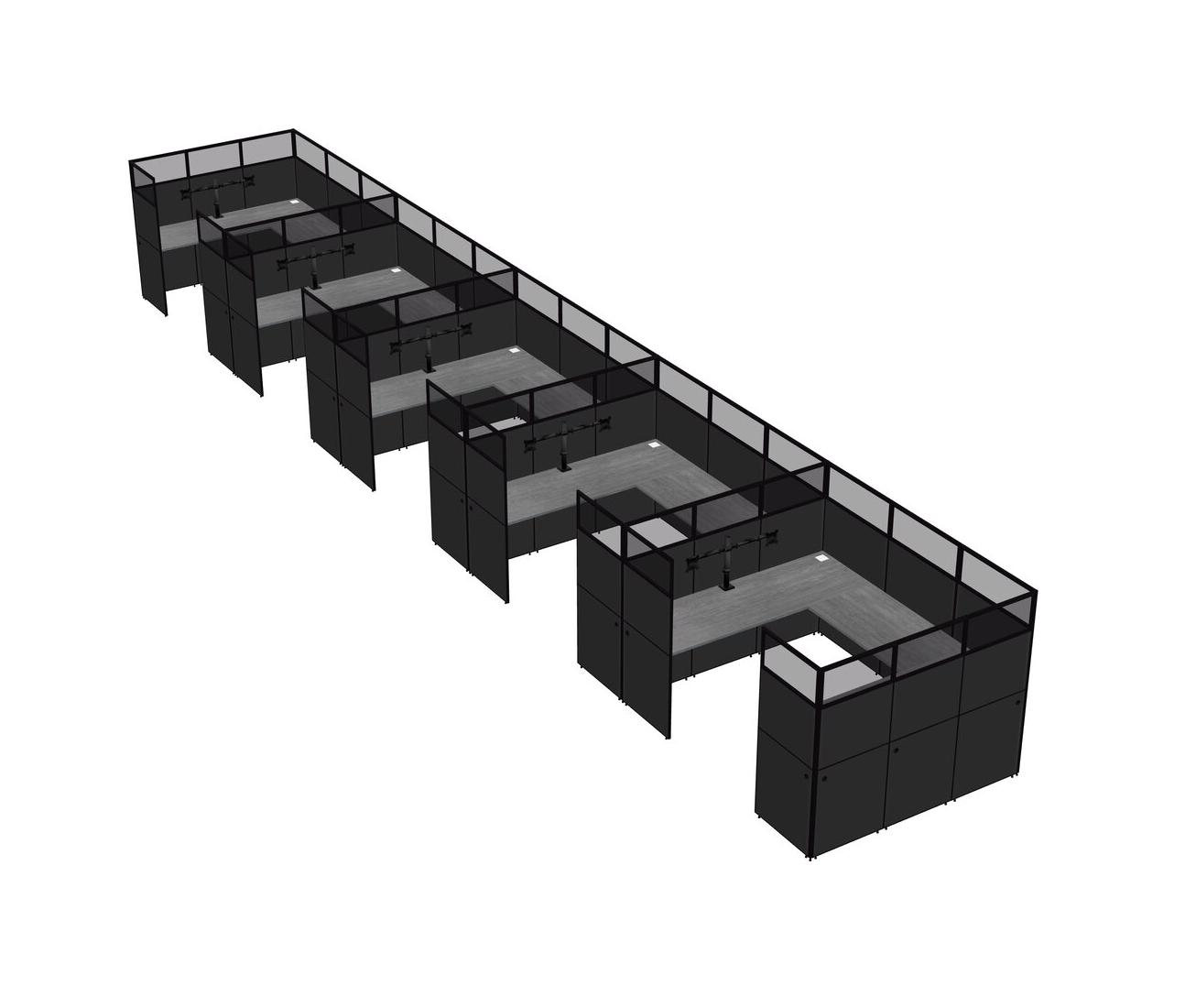 Grey U-shaped Panel System For 5 Person + Monitor Arm (double Arms) For 5 User(s)