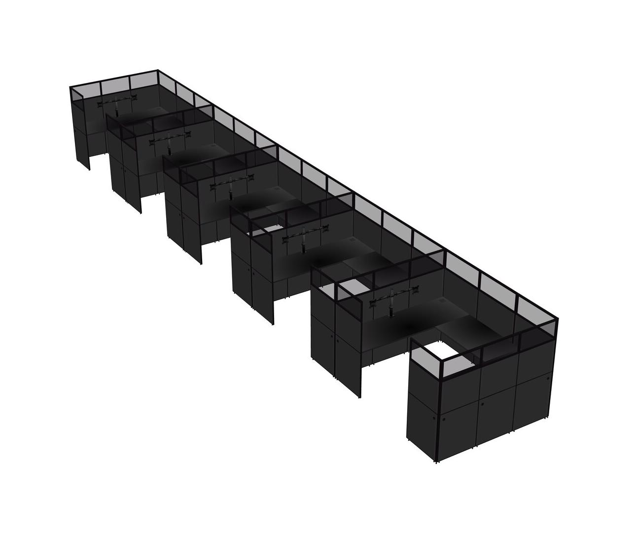 Black U-shaped Panel System For 5 Person + Monitor Arm (double Arms) For 5 User(s)