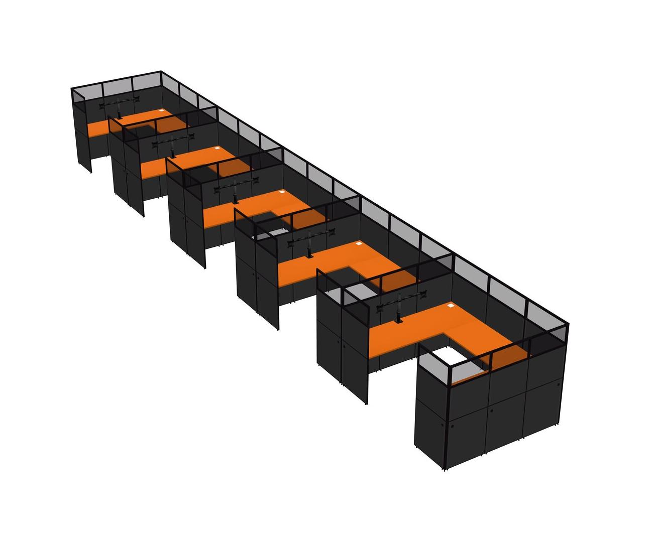 Orange U-shaped Panel System For 5 Person + Monitor Arm (double Arms) For 5 User(s)