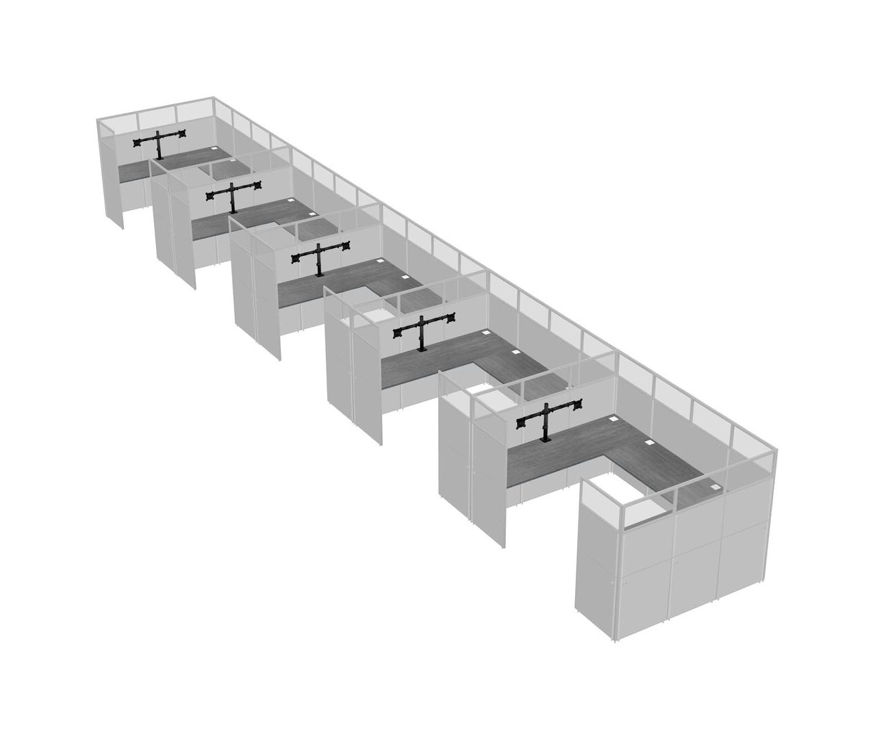 Grey U-shaped Panel System For 5 Person + Monitor Arm (double Arms) For 5 User(s)