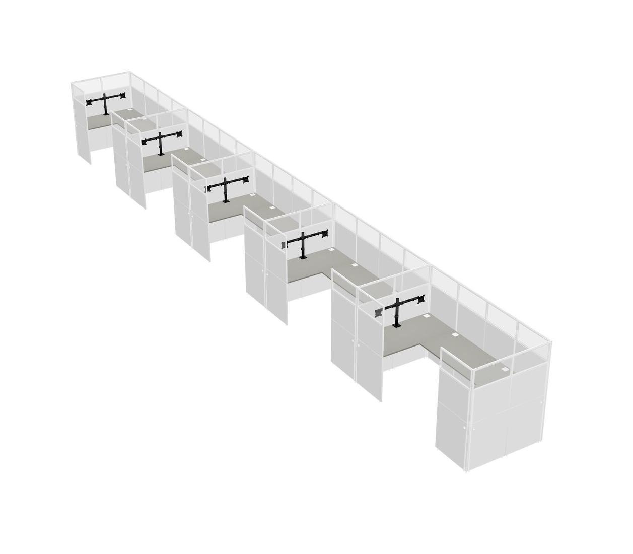 Grey Shadows U-shaped Panel System For 5 Person + Monitor Arm (double Arms) For 5 User(s)