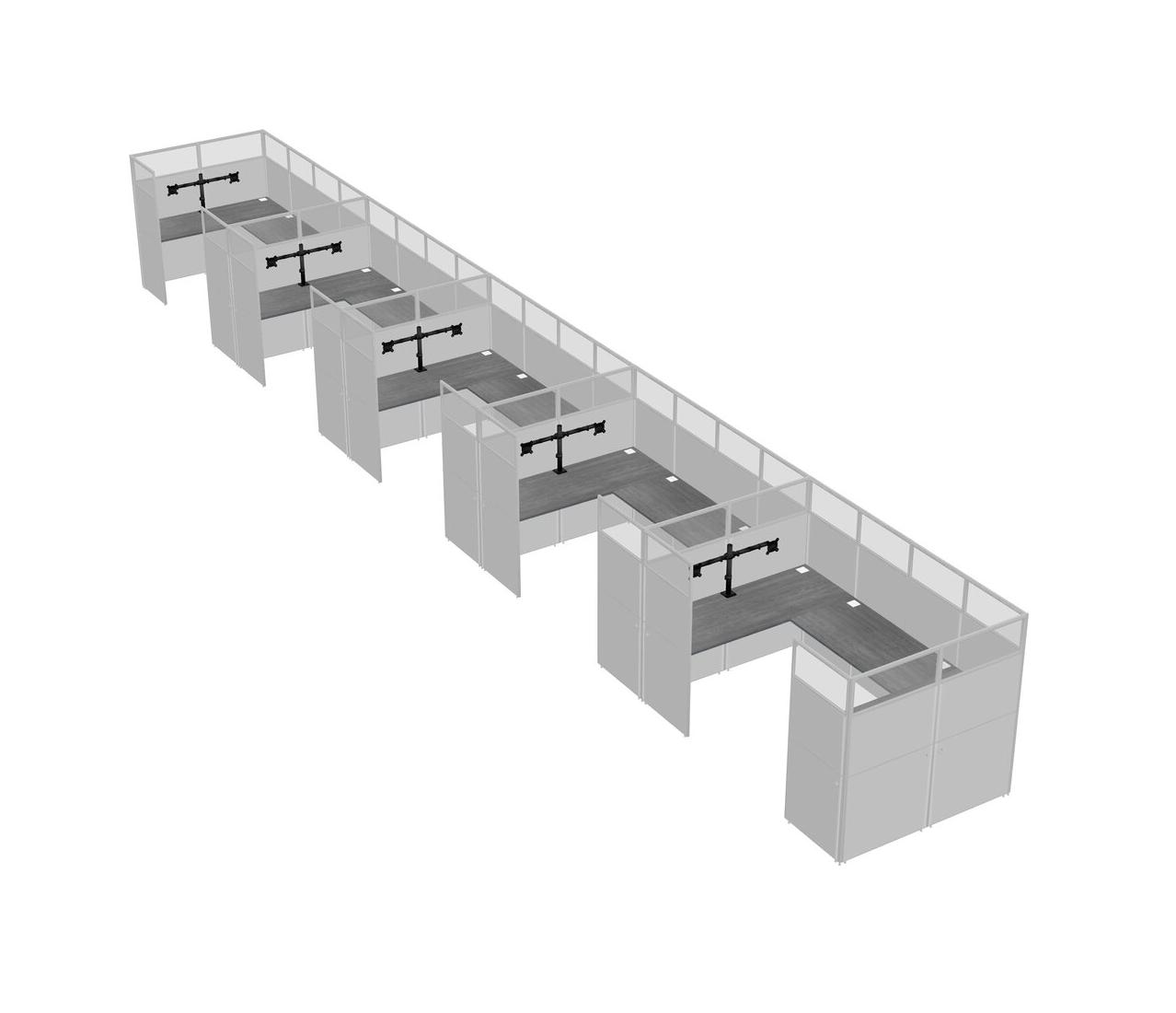 Grey U-shaped Panel System For 5 Person + Monitor Arm (double Arms) For 5 User(s)