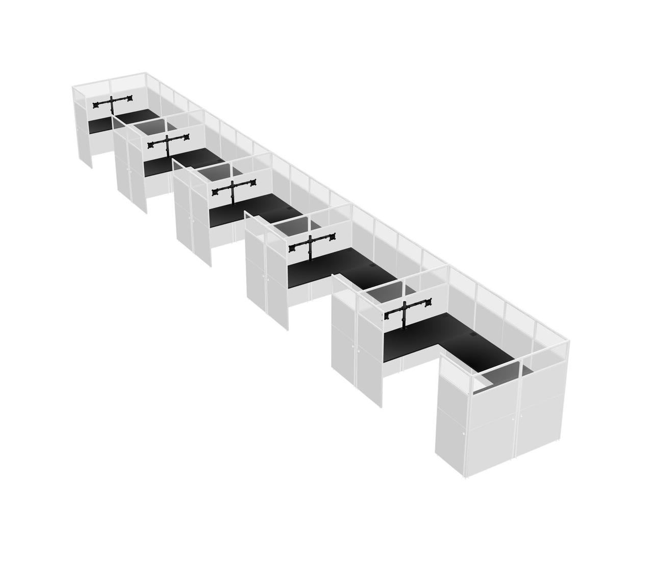 Black U-shaped Panel System For 5 Person + Monitor Arm (double Arms) For 5 User(s)