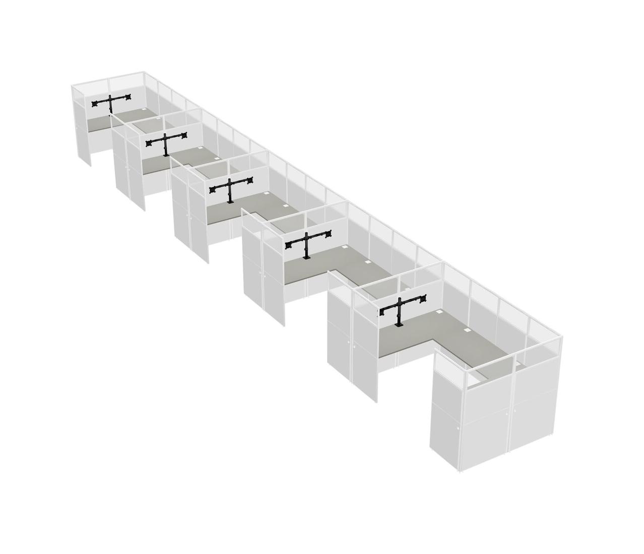 Grey Shadows U-shaped Panel System For 5 Person + Monitor Arm (double Arms) For 5 User(s)
