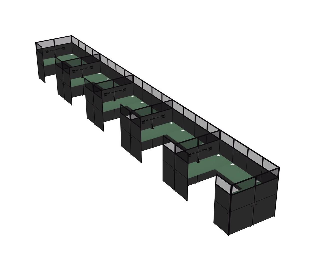 Green U-shaped Panel System For 5 Person + Monitor Arm (double Arms) For 5 User(s)