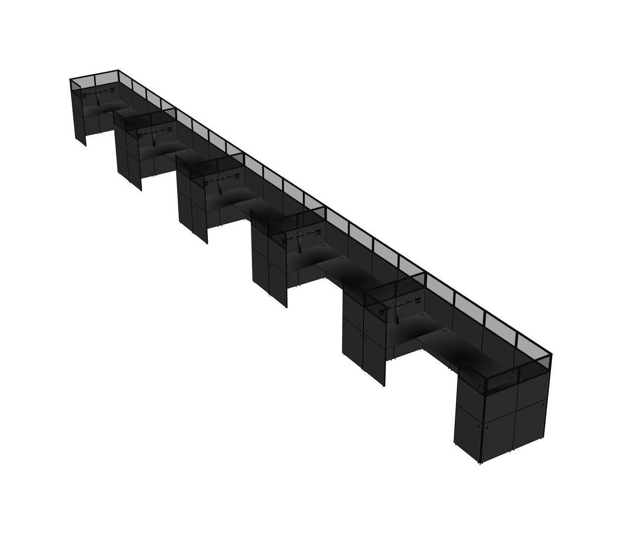 Black U-shaped Panel System For 5 Person + Monitor Arm (double Arms) For 5 User(s)