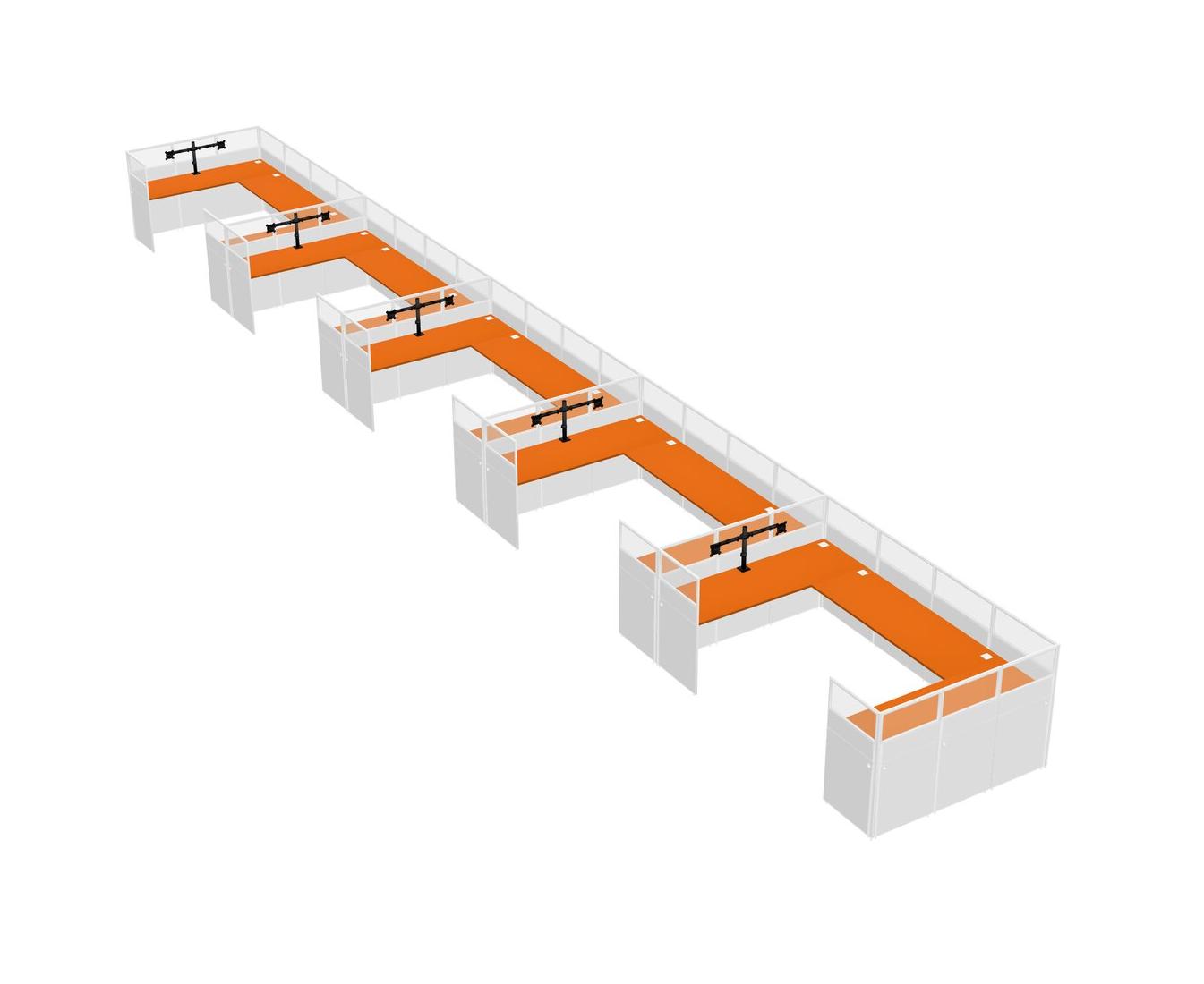 Orange U-shaped Panel System For 5 Person + Monitor Arm (double Arms) For 5 User(s)