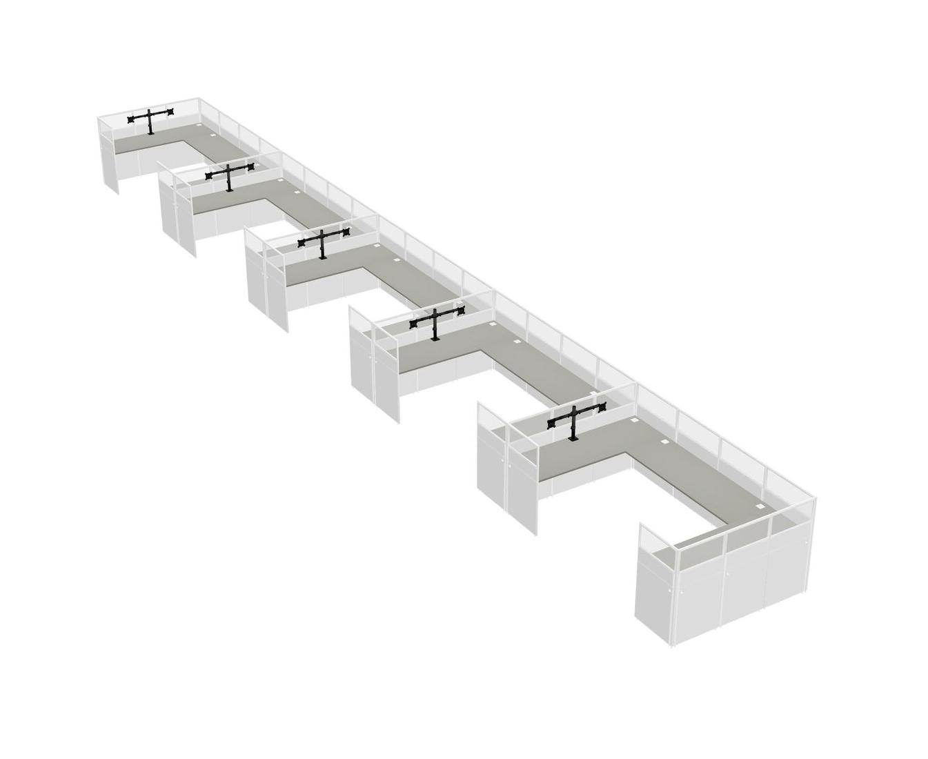 Grey Shadows U-shaped Panel System For 5 Person + Monitor Arm (double Arms) For 5 User(s)