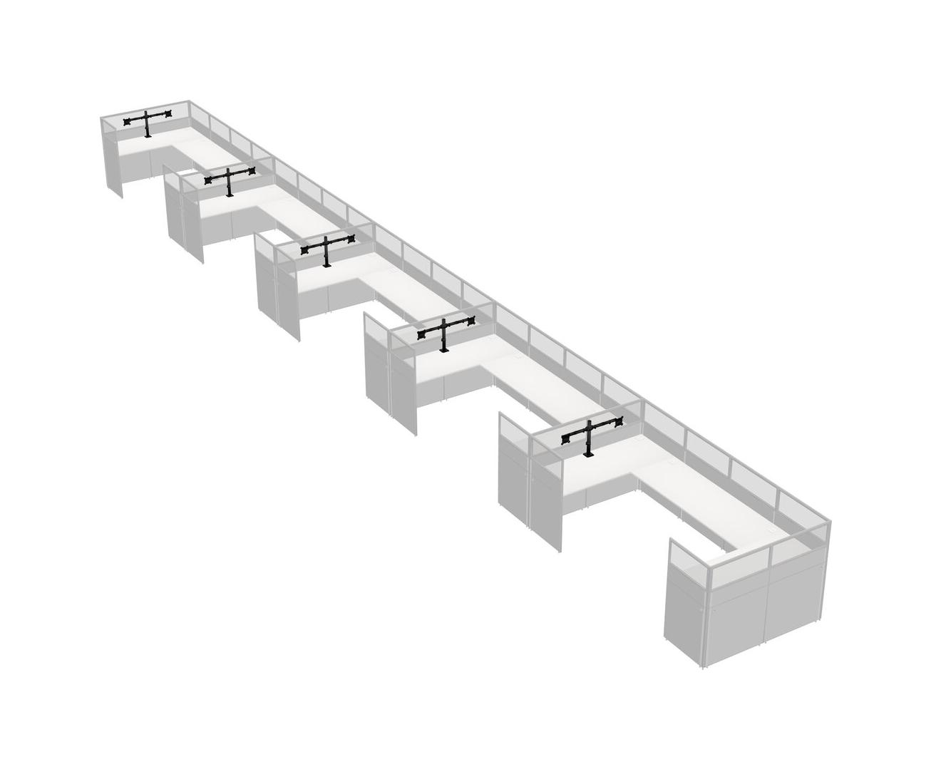 White U-shaped Panel System For 5 Person + Monitor Arm (double Arms) For 5 User(s)