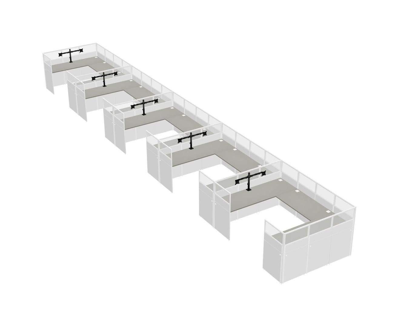 Grey Shadows U-shaped Panel System For 5 Person + Monitor Arm (double Arms) For 5 User(s)