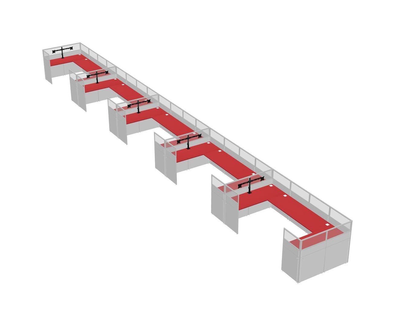 Prism Red U-shaped Panel System For 5 Person + Monitor Arm (double Arms) For 5 User(s)