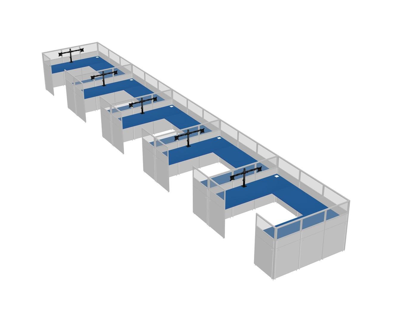 Prism Blue U-shaped Panel System For 5 Person + Monitor Arm (double Arms) For 5 User(s)