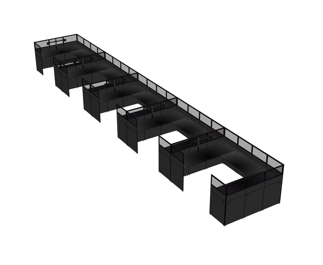 Black U-shaped Panel System For 5 Person + Monitor Arm (double Arms) For 5 User(s)
