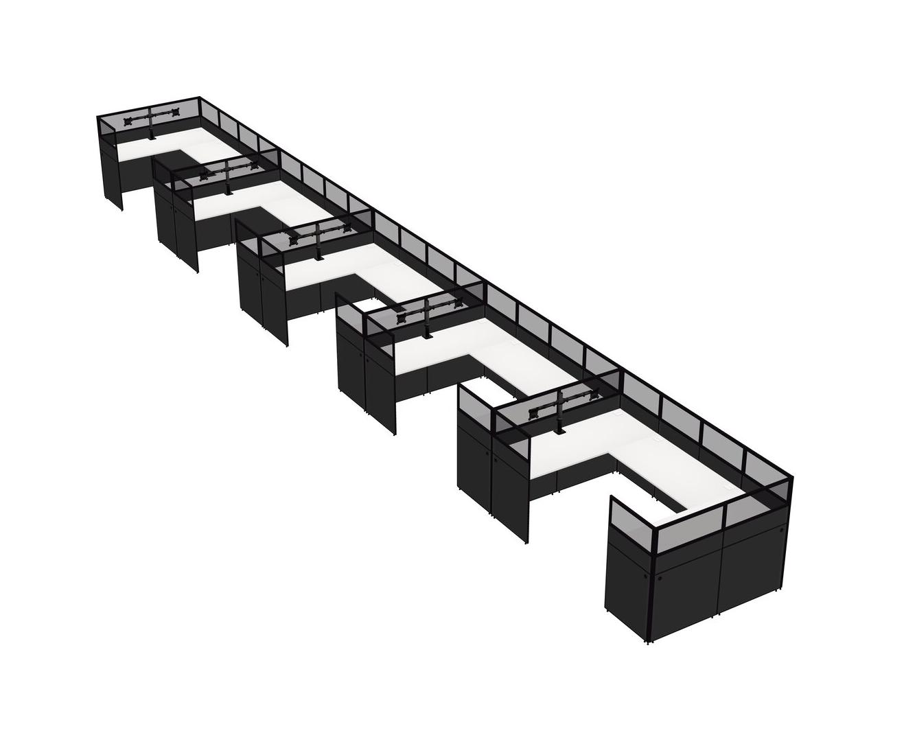 White U-shaped Panel System For 5 Person + Monitor Arm (double Arms) For 5 User(s)