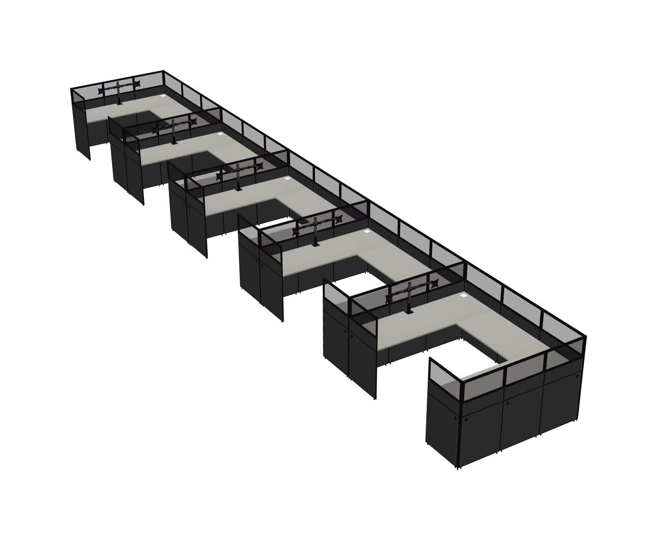 Grey Shadows U-shaped Panel System For 5 Person + Monitor Arm (double Arms) For 5 User(s)