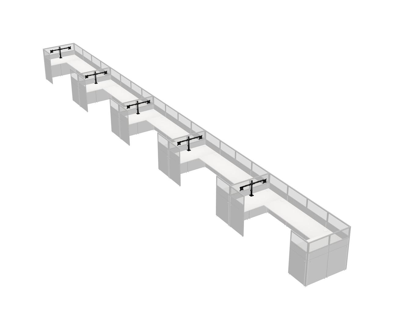 White U-shaped Panel System For 5 Person + Monitor Arm (double Arms) For 5 User(s)