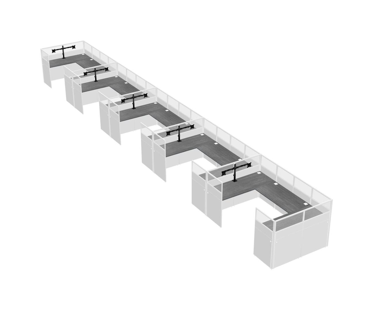 Grey U-shaped Panel System For 5 Person + Monitor Arm (double Arms) For 5 User(s)