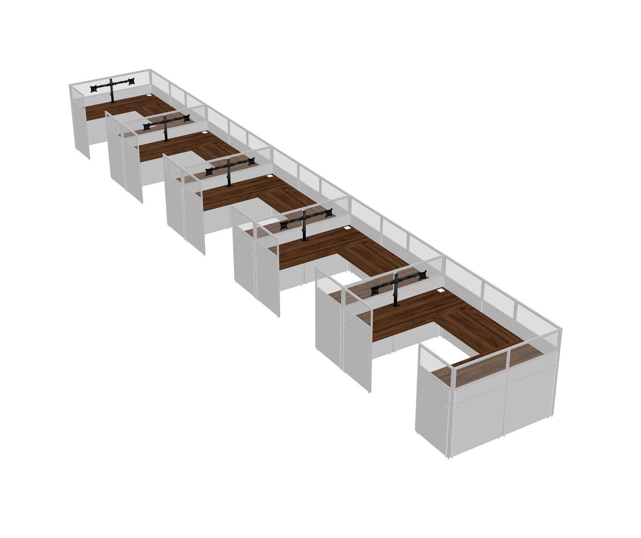 Columbia Walnut U-shaped Panel System For 5 Person + Monitor Arm (double Arms) For 5 User(s)