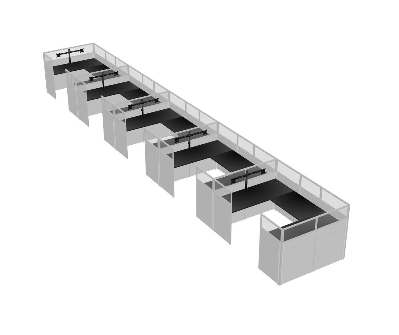 Black U-shaped Panel System For 5 Person + Monitor Arm (double Arms) For 5 User(s)