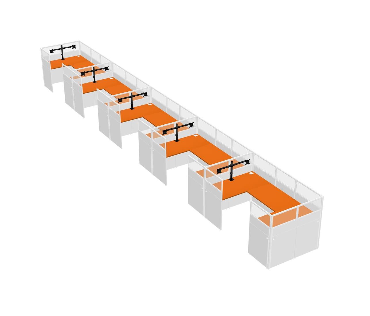 Orange U-shaped Panel System For 5 Person + Monitor Arm (double Arms) For 5 User(s)