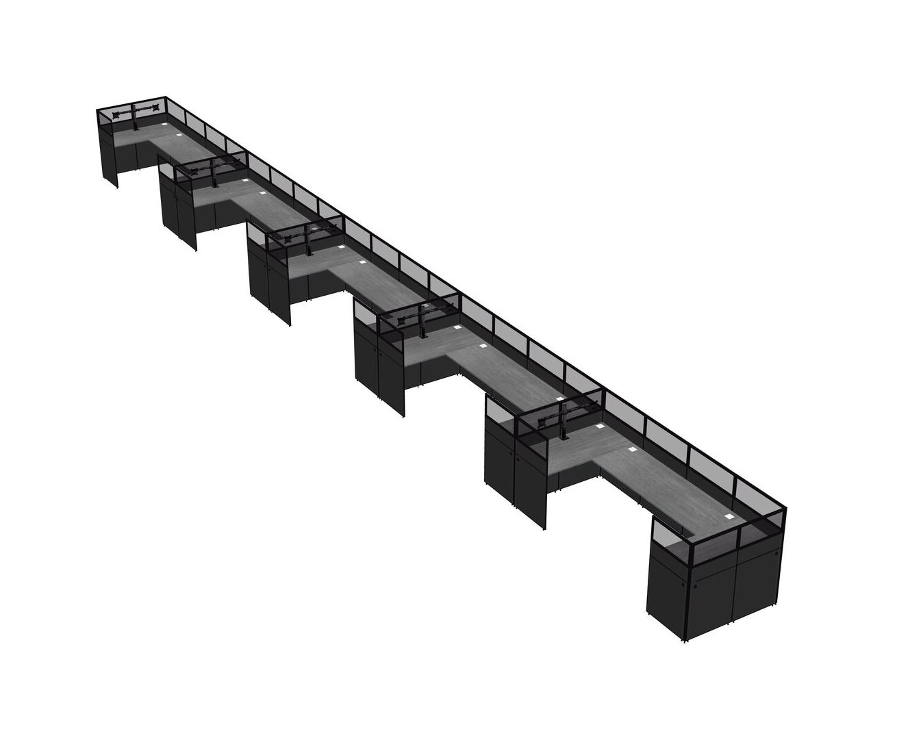 Grey U-shaped Panel System For 5 Person + Monitor Arm (double Arms) For 5 User(s)