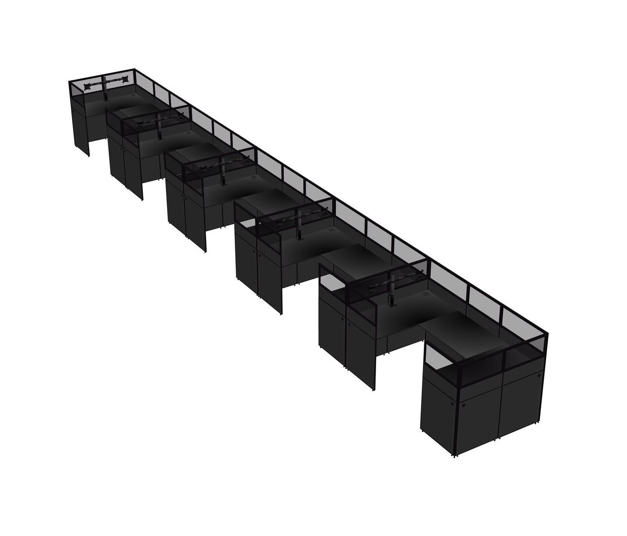 Black U-shaped Panel System For 5 Person + Monitor Arm (double Arms) For 5 User(s)