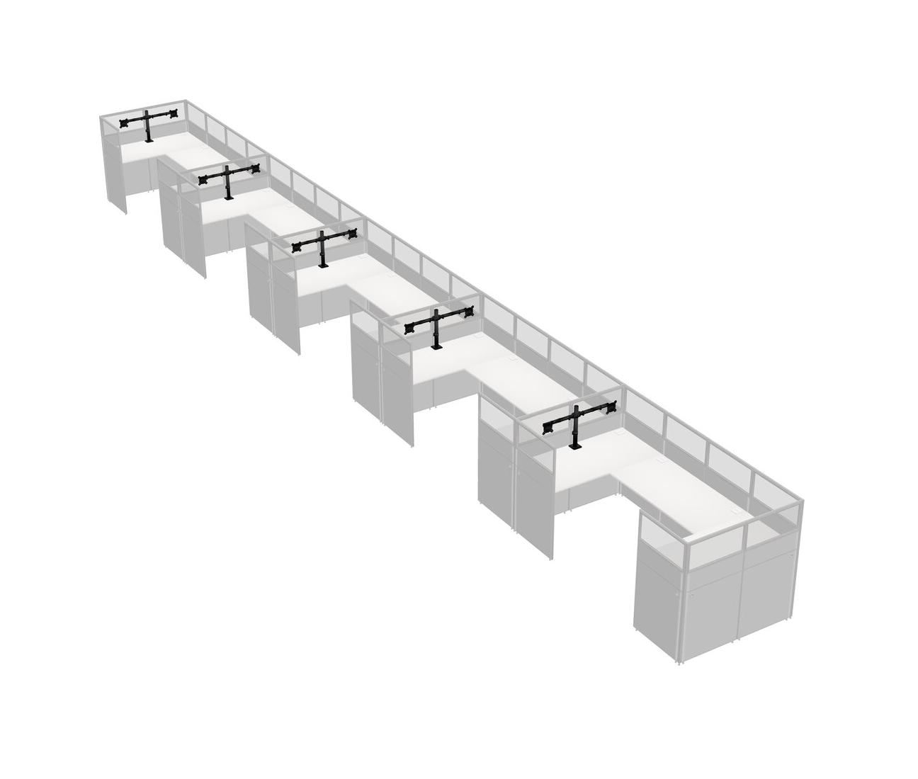 White U-shaped Panel System For 5 Person + Monitor Arm (double Arms) For 5 User(s)