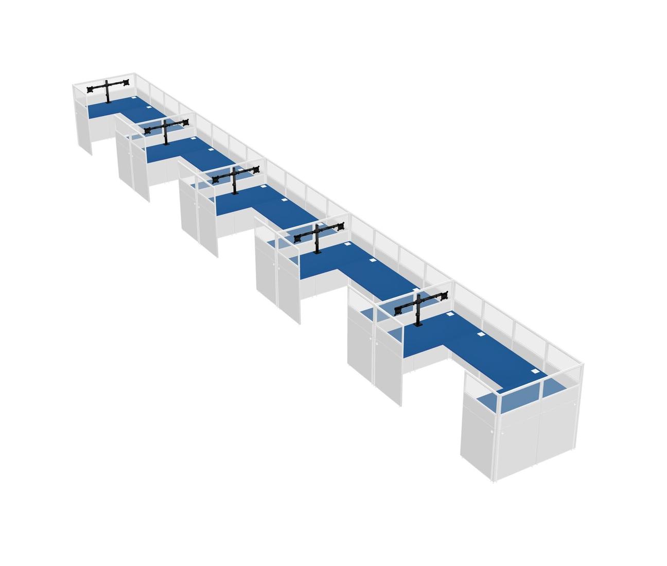 Prism Blue U-shaped Panel System For 5 Person + Monitor Arm (double Arms) For 5 User(s)