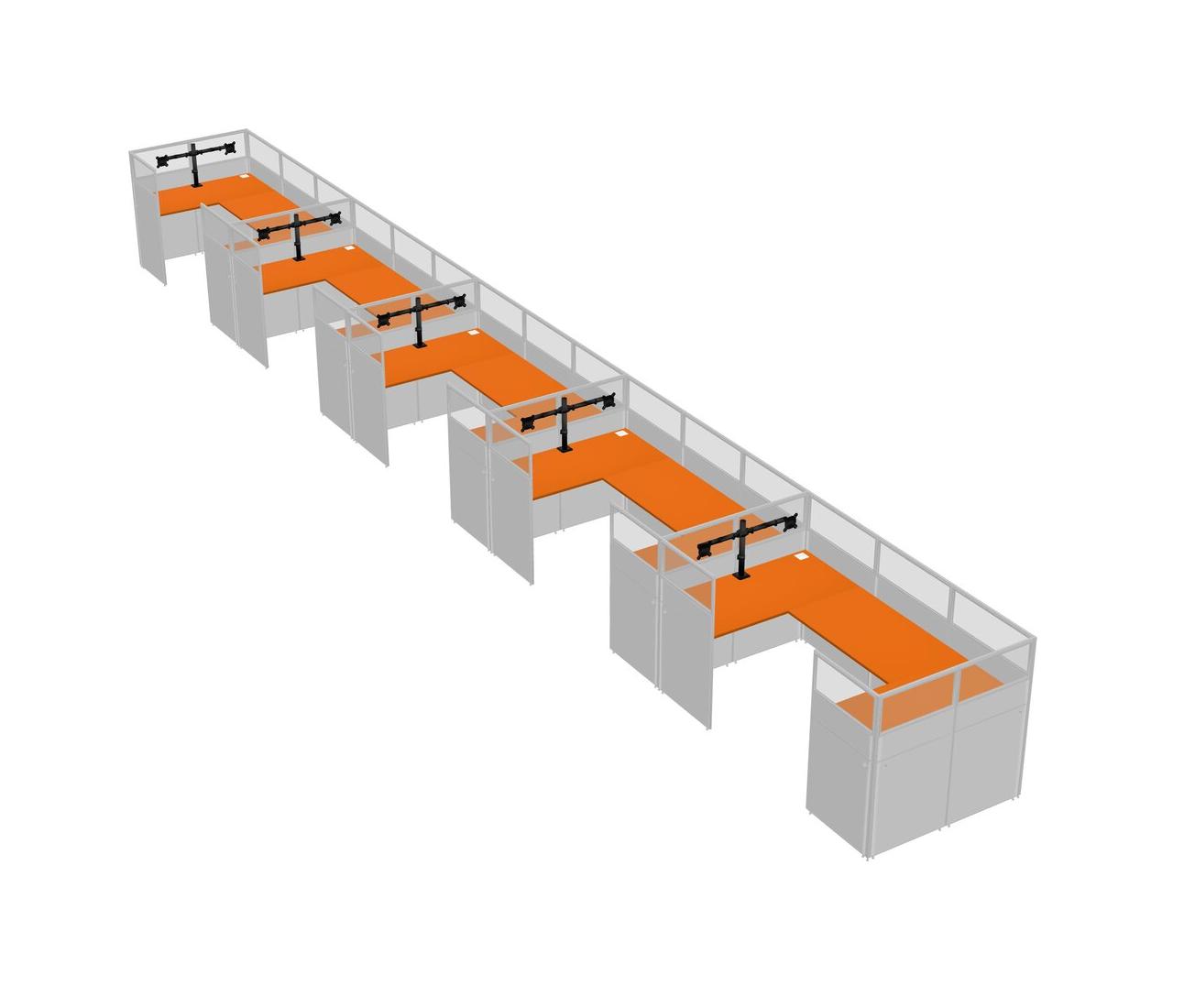 Orange U-shaped Panel System For 5 Person + Monitor Arm (double Arms) For 5 User(s)