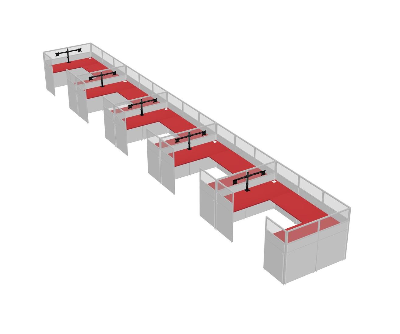 Prism Red U-shaped Panel System For 5 Person + Monitor Arm (double Arms) For 5 User(s)