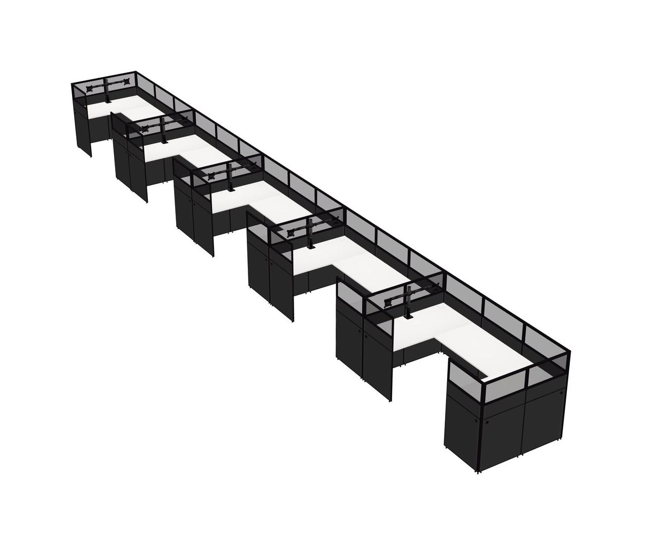 White U-shaped Panel System For 5 Person + Monitor Arm (double Arms) For 5 User(s)