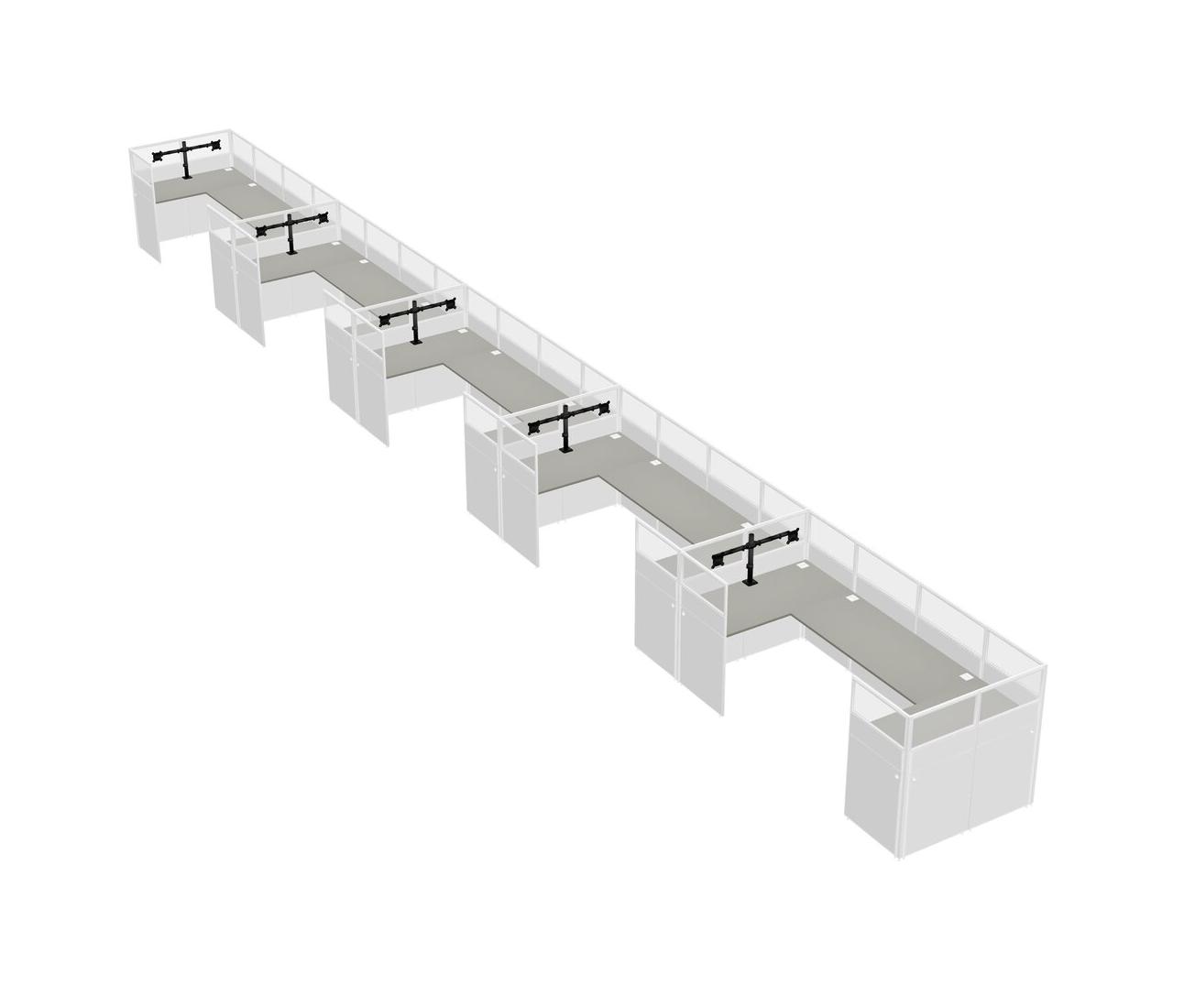 Grey Shadows U-shaped Panel System For 5 Person + Monitor Arm (double Arms) For 5 User(s)