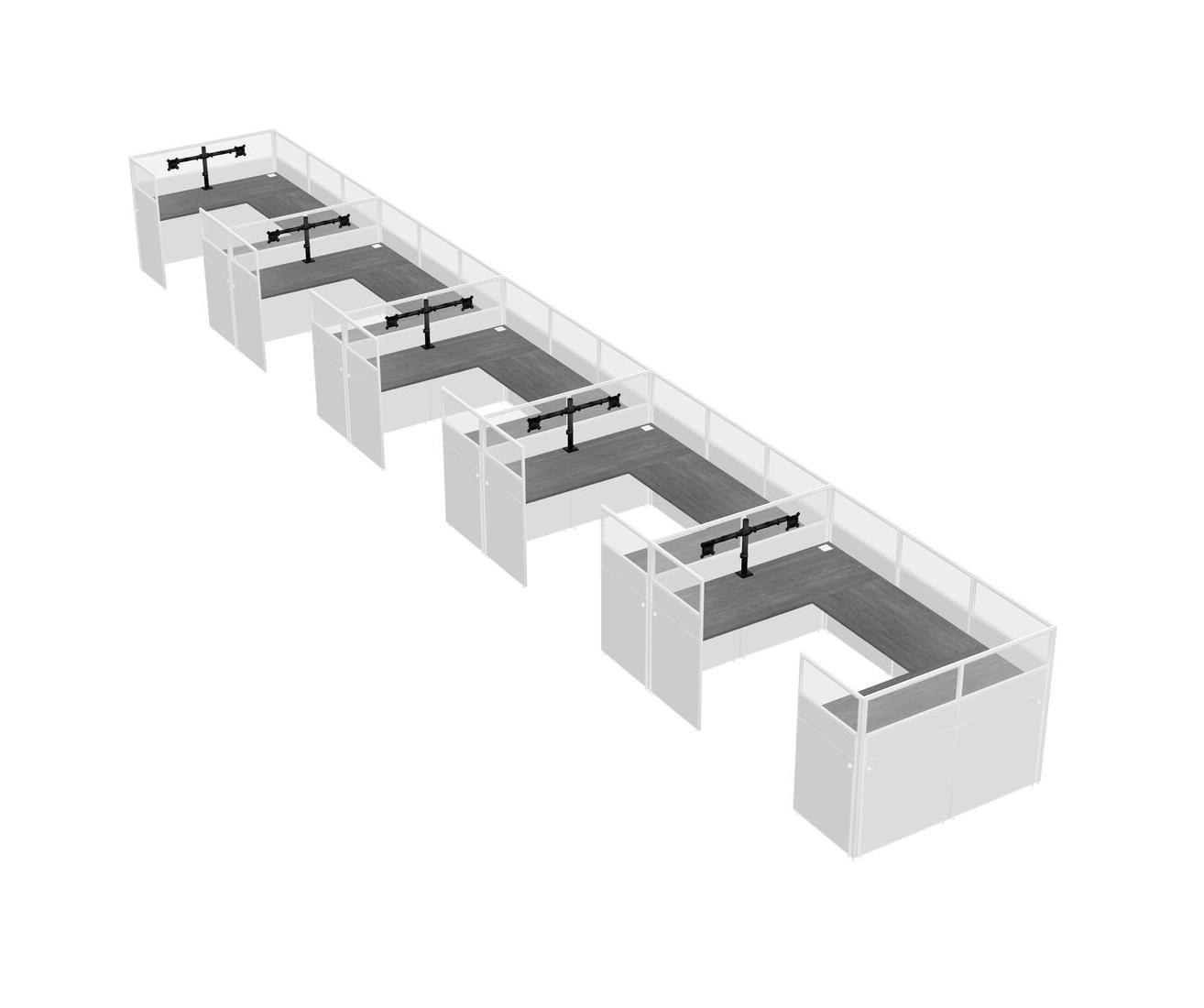 Grey U-shaped Panel System For 5 Person + Monitor Arm (double Arms) For 5 User(s)