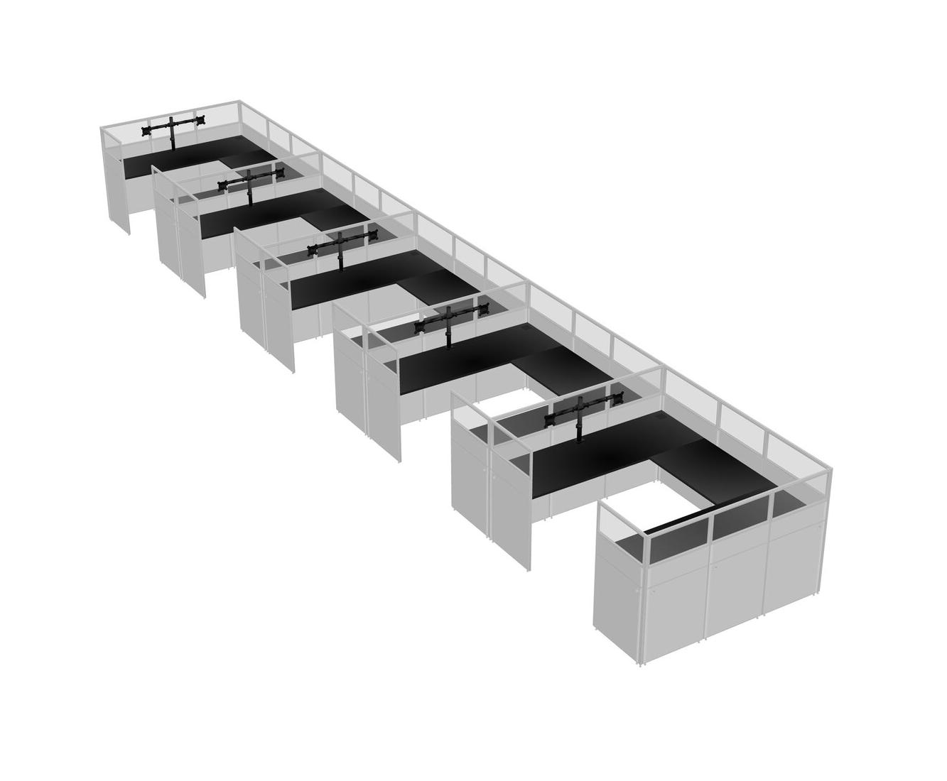 Black U-shaped Panel System For 5 Person + Monitor Arm (double Arms) For 5 User(s)