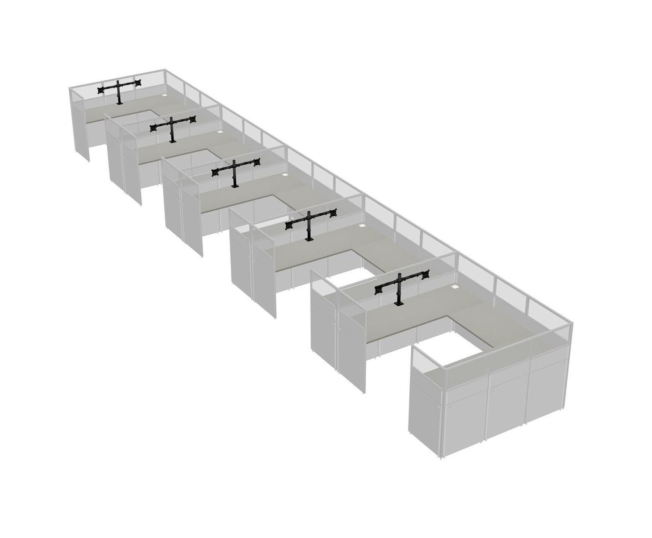 Grey Shadows U-shaped Panel System For 5 Person + Monitor Arm (double Arms) For 5 User(s)