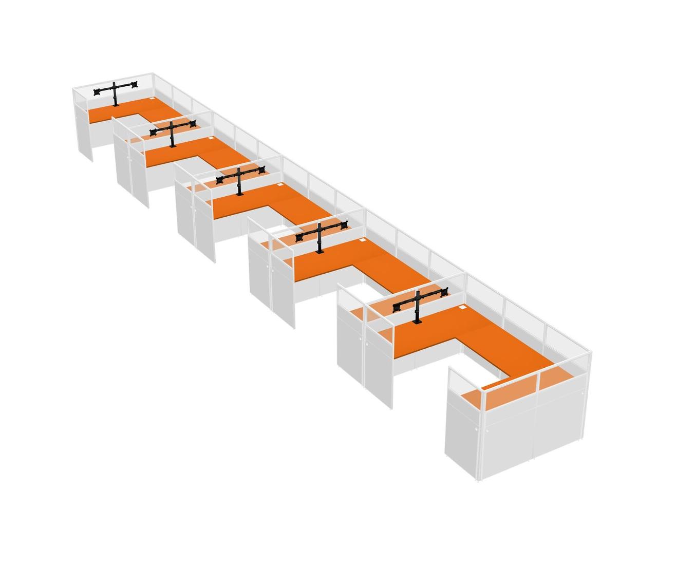 Orange U-shaped Panel System For 5 Person + Monitor Arm (double Arms) For 5 User(s)