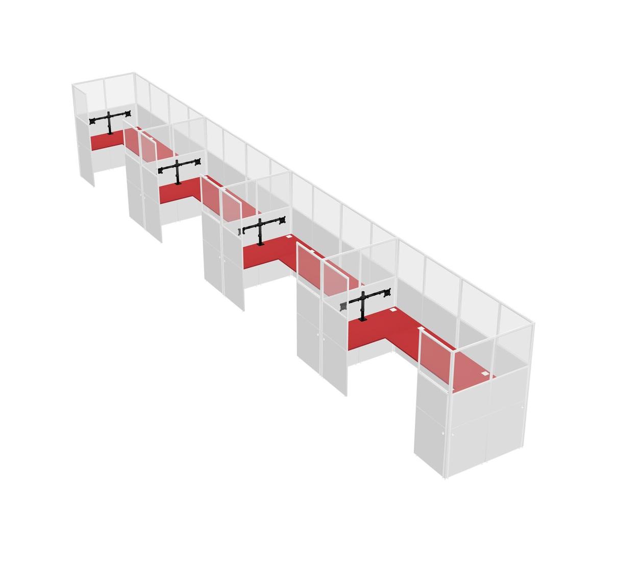 Prism Red U-shaped Panel System For 4 Person + Monitor Arm (double Arms) For 4 User(s)