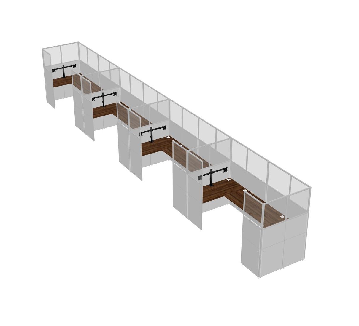 Columbia Walnut U-shaped Panel System For 4 Person + Monitor Arm (double Arms) For 4 User(s)