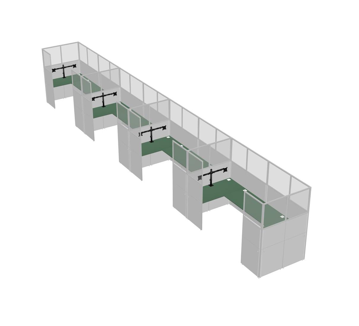 Green U-shaped Panel System For 4 Person + Monitor Arm (double Arms) For 4 User(s)