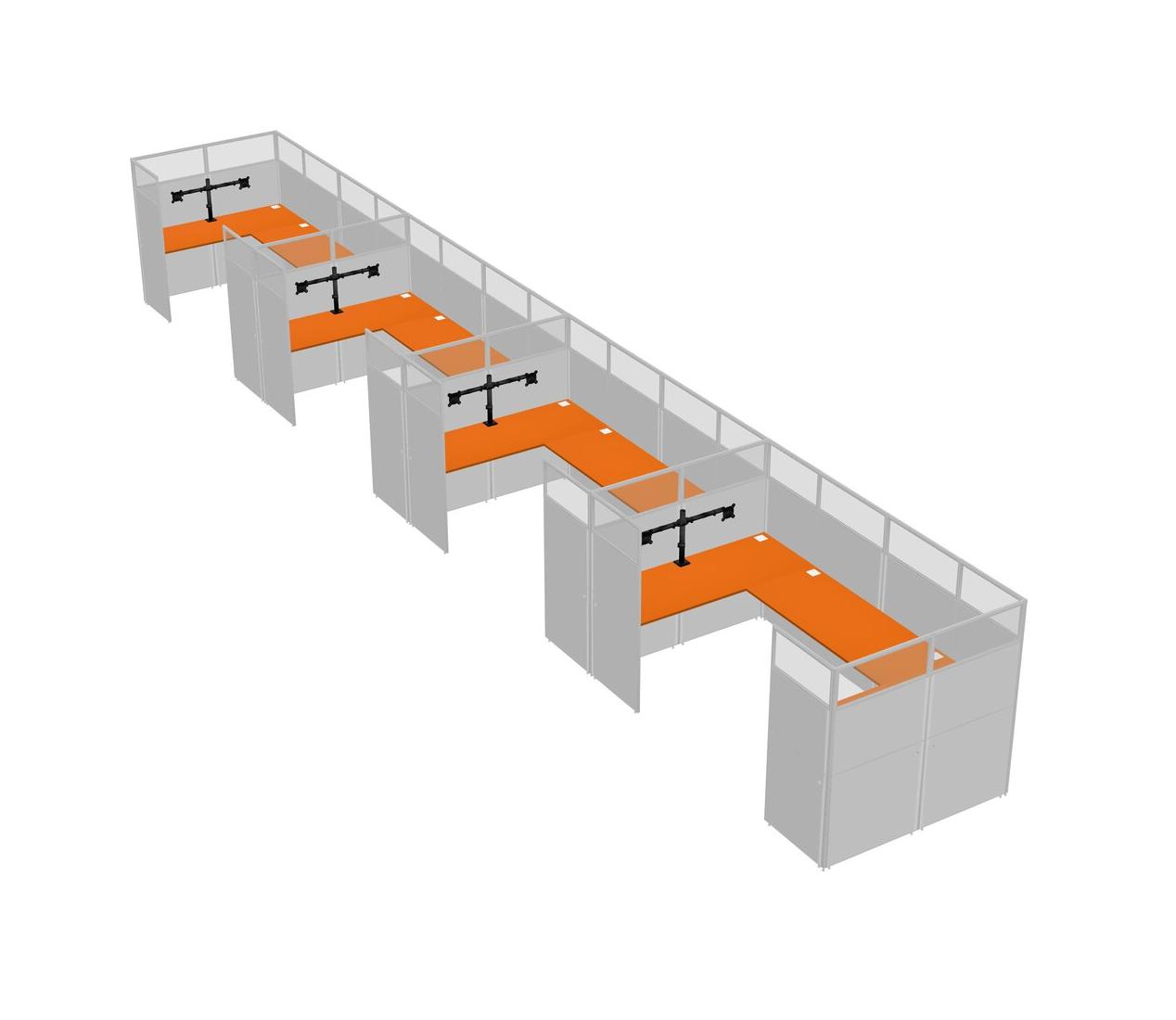 Orange U-shaped Panel System For 4 Person + Monitor Arm (double Arms) For 4 User(s)