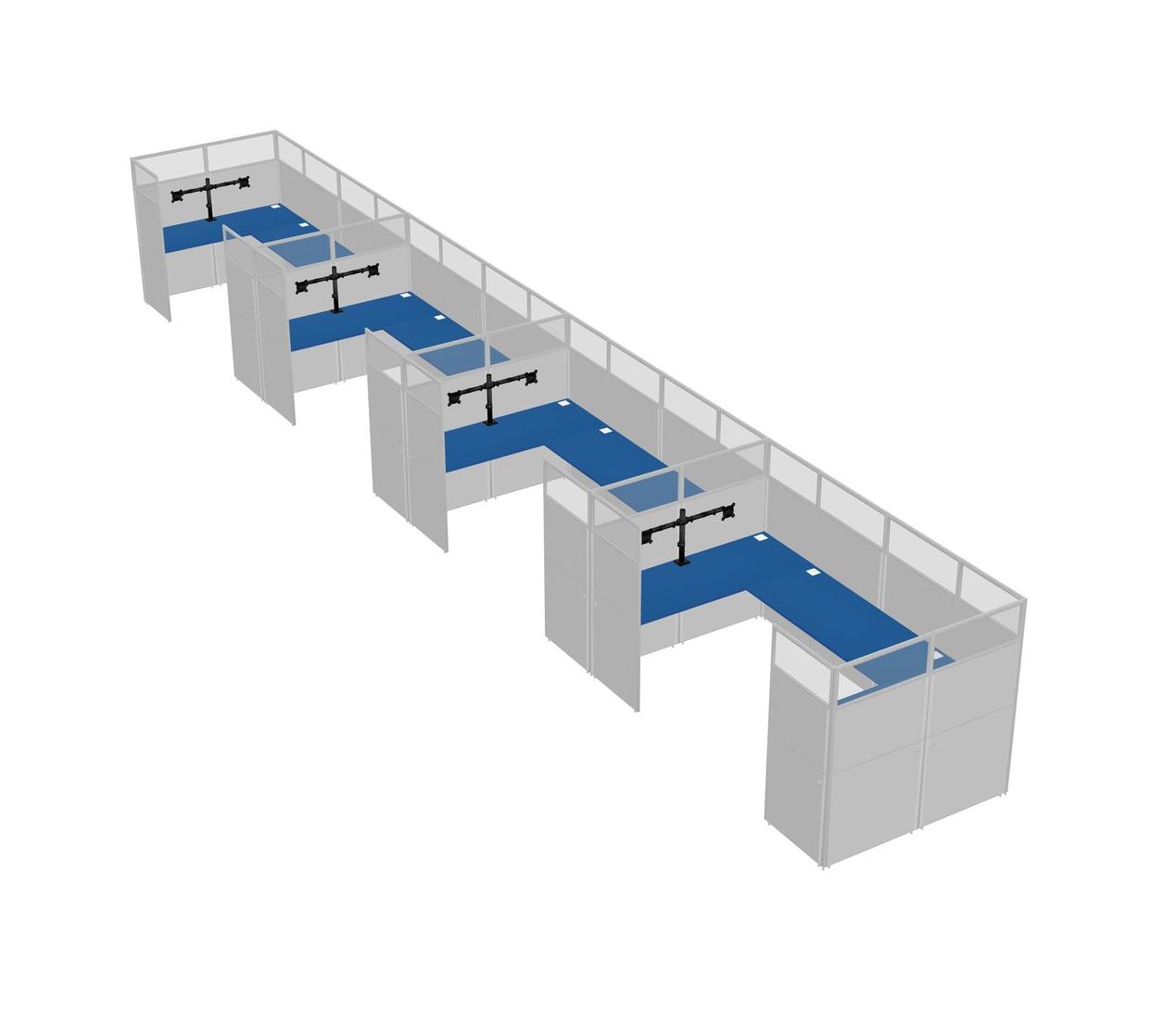 Prism Blue U-shaped Panel System For 4 Person + Monitor Arm (double Arms) For 4 User(s)