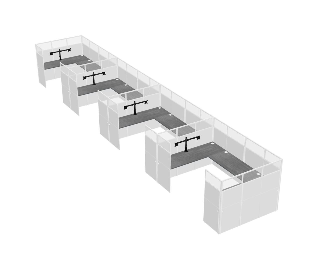 Grey U-shaped Panel System For 4 Person + Monitor Arm (double Arms) For 4 User(s)