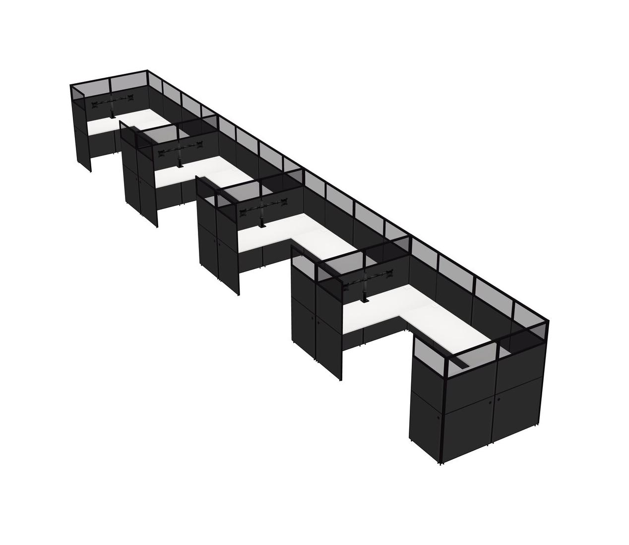 White U-shaped Panel System For 4 Person + Monitor Arm (double Arms) For 4 User(s)