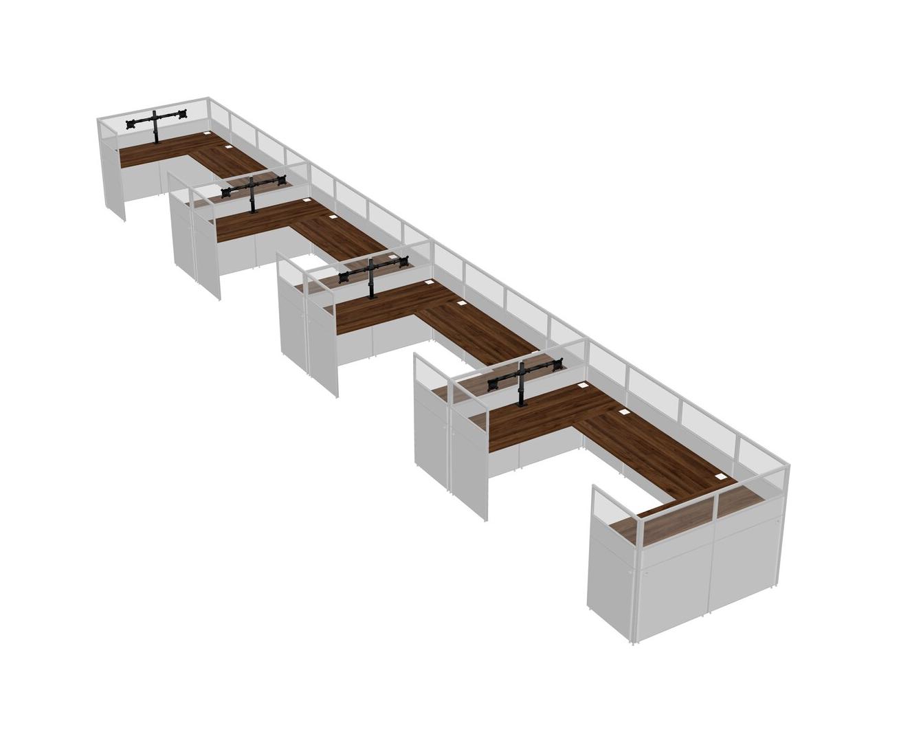 Columbia Walnut U-shaped Panel System For 4 Person + Monitor Arm (double Arms) For 4 User(s)