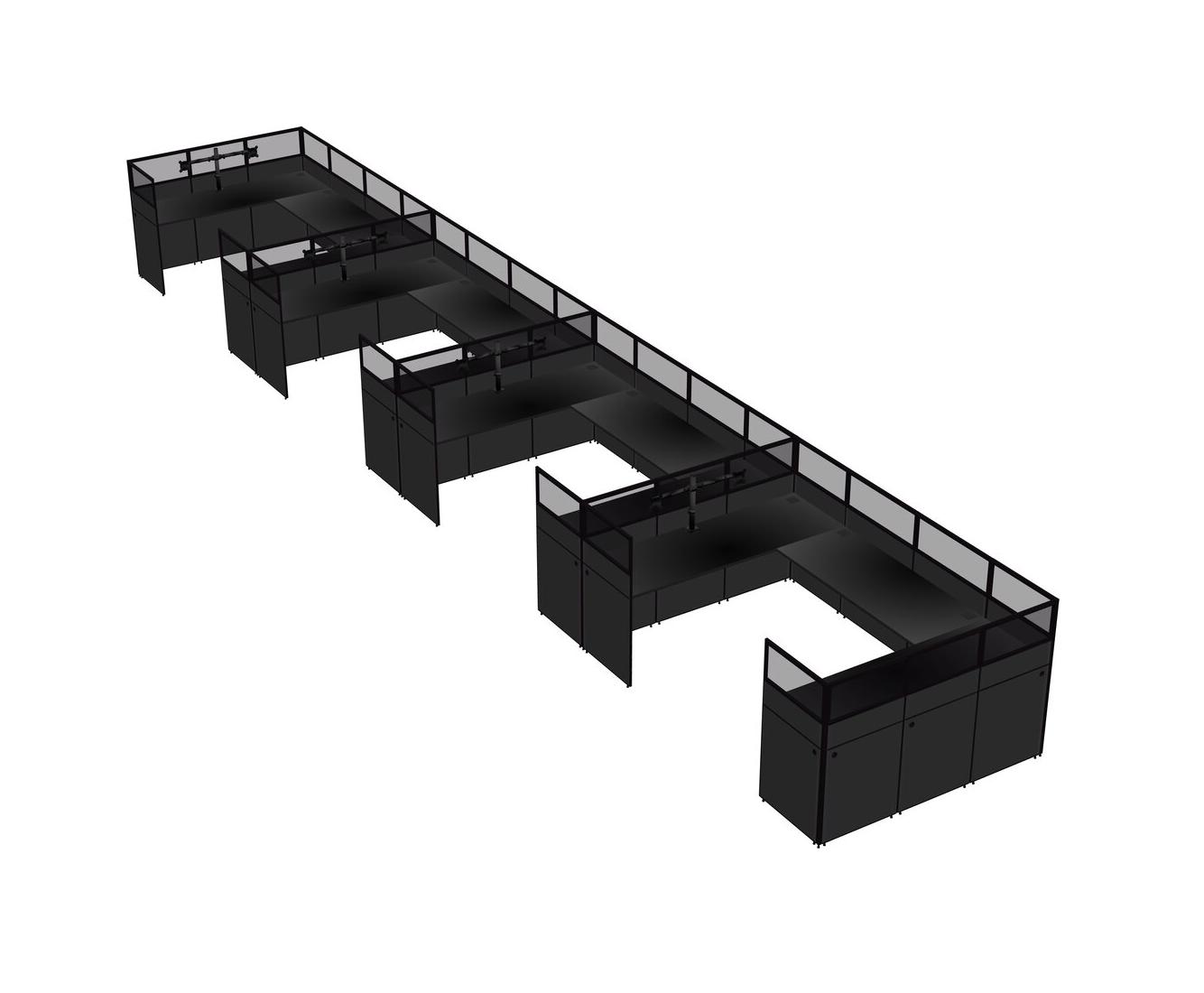 Black U-shaped Panel System For 4 Person + Monitor Arm (double Arms) For 4 User(s)